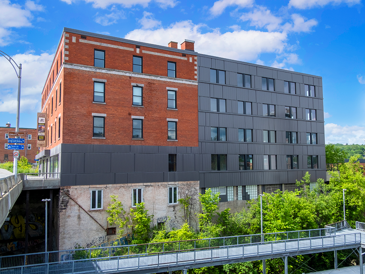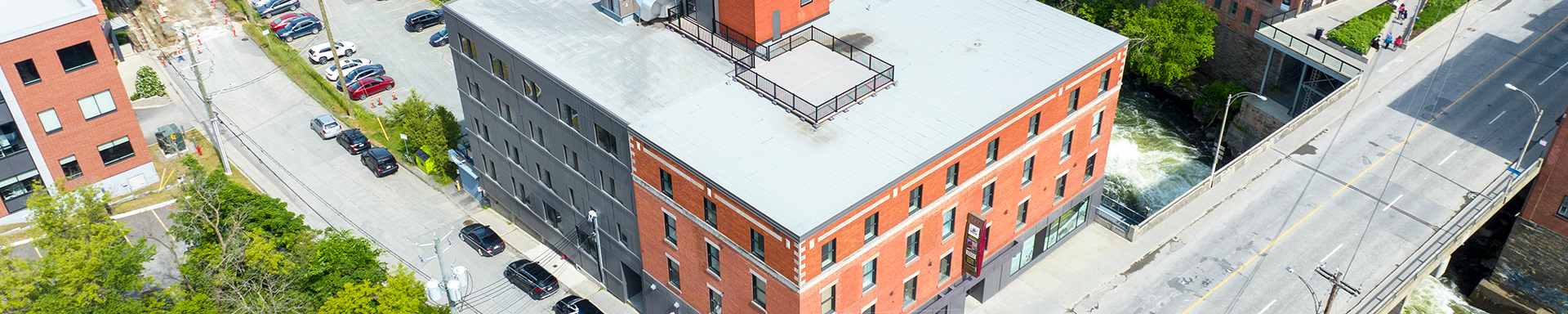 Surplombant les rivières Magog et Saint-François, l’immeuble offre une vue exceptionnelle sur la ville. De plus, la promenade extérieure vous permet d’accéder aux sentiers de la gorge de la rivière Magog, ainsi qu’au futur parc riverain de la rivière Saint-François. Le tout, à deux pas de la rue Wellington, l’artère principale du centre-ville de Sherbrooke !